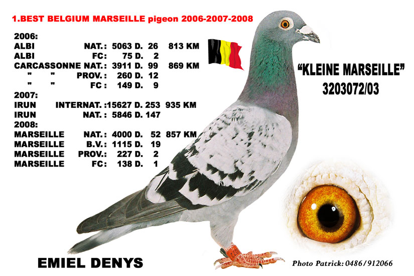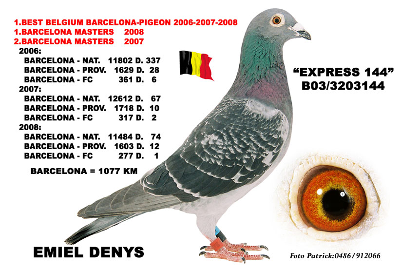 2005年,艾米尔.丹尼斯参加了西班牙的国际鸽联F.C.I.大奖赛,当时他送去参加比赛的鸽子年龄很小,是在2月底出生的,参加比赛的时候是7月份,只有5个月大。当时那场比赛当日归巢的只有3羽,而这羽鸽子就是其中1羽。同年,他又赢得了泰国“公主杯”的冠军,这羽冠军鸽就是参加西班牙F.C.I.大奖赛获奖鸽的妹妹。2007年艾米尔.丹尼斯再次参加了泰国的公棚大奖赛,获得了第3名的优异成绩。同年,他还获得了匈牙利国际鸽联F.C.I.大奖赛的冠军。也充分证明了他所培育的鸽子有着绝对雄厚且全方面的实力。 2008年,可以说是艾米尔.丹尼斯赛鸽生涯中最辉煌的一年,无论是在长距离比赛上,或是公棚比赛中,他都获得了出色的成绩。他的 “特快144”号(EXPRESS 144)获得了06-08年巴塞罗那鸽王的冠军;“小马赛”(KLEINE MARSEILLE)也获得了06-08年鸽王冠军;“茱迪”(JUDY)获得圣维仙国际赛雌鸽组的冠军,总排名排在第3位。
