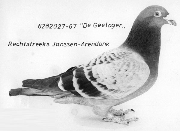 ![]() 超级鸽来龙去脉 ★美丽浅斑雌51(Schoon Licht van 51)美丽浅斑(Schone Lichtevan 55)笨蛋67 (Zot van 67) 经常于50年代到访詹森鸽舍的鸽友们,会以为“美丽浅斑雌51”(Schoon Licht van 51)很可能是阿连栋克鸽舍空前最美丽的一羽鸽子。也许这是对的,这羽雌鸽美丽无比,正如其名。做为种鸽,它也是无双的,它跟“灰48”(Blauwe van 48)配对了一段颇长的时间,假若詹森兄弟会让某一配对连续配几年之久,你就可以假定它们这个配对一定是黄金配对。“美丽浅斑雌 51”跟“石板灰48”育出了像“好灰雌54”(Goed Blauw van 54),这羽雌鸽正是日后那羽伟大的“麦克斯67”(Merckx van 67)的曾祖母,父鸽这一边则有“公牛号” (Stieren)。研究“麦克斯”的血统,我们会发现它母亲这一边有“女小子”(Kleintje),其源头则是来自“美丽浅斑雌51”。同时,“石板灰48”跟“美丽浅斑雌51”也产生一羽雌鸽,它后来成为“害羞59”(Bange van 59)的母鸽。“美丽灰雌54”(Schoon Blauw van 54)跟“害羞51”的儿子“害羞59”配对。从这一配对也育出了“胖灰白眼56”(Dikke Blauwe Witoger van 56),该鸽就是“女小子65”(Kleintje van l965)的祖父,“女小子65”就是“麦克斯67”之母亲。“胖灰白眼”的全兄弟鸽“公牛55”(Stier van 55),也是“麦克斯”的祖父,不过,它却是出现在“麦克斯”父系的这一边。“美丽浅斑雌”的血缘且流至乔斯.克拉克那羽“年轻配对”(Jong Koppel)那儿。“美丽浅斑雌5l”也是“20-种雄”(20-Kweekdoffer)H56- 786720的祖母,“20-种雄”则是林森博士那羽“20之子”(Zoon 20)的父鸽。林森博士这羽“20之子”则育出了“乞丐”(Bedelaar),这是一羽很出名的雄鸽,是远近都害怕它的无敌战将。 “美丽浅斑雌51”最出名的众多直子中有一羽名为“美丽浅斑雌55”(Schone Lichte van 55),它是“黄眼号1967”(Geeloger vanl967)的祖父,“67”是被伍特斯购走的。史丹.雷马克(Stan Raymaeckers)也获得“黄眼号”的一羽直女,它就是那羽“灰若丝”(Blauwe Jose),它是一羽战绩无匹的雌选手鸽。也可能是一羽从来未有过那么杰出的雌选手鸽。雷马克的“灰若丝”育出了“卡路顿”(Carlton),赢得1982年的波治全国冠军。“卡路顿”的全姊妹鸽“B82-6730590”则移居奥史得加(Oostakker)的勃斯翠特(Verstraete),它成为“皮高贝洛”(PiccoBello)B83-4204059之母,“59”是一羽长间隔省赛冠军,也是《De Reisduif》鸽报全国鸽王。“皮高贝洛”的父鸽是B79-4693619,在它的血统中我们可以找到乔斯.克拉克那羽“斗士”(De Vechter)出现两次,还有林森博士那羽“凯撒”(Caesar)的名字也在其中。“美丽浅斑55”也是“美丽浅斑雌62”(SchoonLicht van 62)的父鸽,起初是预定只让它当种鸽的,但却由于当时詹森兄弟有一些超级鸽死于农药中毒,结果就决定让“美丽浅斑雌62”也开始参赛。它于拉威洛(Ravels)成功地以超前一分钟获胜,随后的2位及3位也是同舍鸽!事实上,在出赛拉威洛时,很多人都以为自己的鸽子都是超级战将,直到詹森兄弟入赏l、2、3名之后,他们才不敢再出声。跟下来,这羽“美丽浅斑雌55”又育出了一羽非凡的灰白羽雌鸽。这羽灰白羽雌鸽再配“喂饲台下巢箱内的美丽雄(Schonevan onder de tafel)”,这羽雄鸽的父鸽则是“害羞51”之子(一羽灰鸽),其母鸽则是“害羞5l”之女。 “喂饲台下巢箱内的美丽雄”因美丽夺目而被取了这个名字,事实上它经常都会选择喂饲台下方的巢箱来育殖自己的幼鸽。 尽管这羽“喂饲台下的美丽雄”是以自然制参赛的,它却获得连串的辉煌战绩。从这个配对:“喂饲台下的美丽雄”X“灰白羽雌鸽”(Blauwe tpenneke)为詹森兄弟育出了“笨蛋 1967”(Zot van 67)。 为什么把它叫做“笨蛋”呢?一岁鸽龄的它,在开始以鳏夫制使翔的时候,它像发了疯般的逐雌,但它却是一羽高级选手鸽。有一回,它以分速1800米于南康宾(Zuiderkempen)获得第二名。这是一个超过1,000会员的大鸽会。跟下来,它又出赛一回让人追悼的1968年的大灾难赛,能当天归返的鸽子没有几羽,它是其中之一。“老麦克斯”也参加这回大灾难赛,是在数天后才返回鸽舍的。 这回灾难性赛事后的一个星期天,它被送往拿永参赛。天气明朗吹逆风,“笨蛋”超前4分钟领先,击败了另一羽同舍鸽“浅斑69”。 因此,若说它是一羽全能鸽,这也是很中肯的。 罗路.韦斯提和他的儿子司维亚(Xavier)。在一回强劲顺风的赛事中,它赢得第二名,这是一回鸽界有史以来最严重的灾难赛事,它还是领先归巢,跟下来,在一个晴朗的天候且吹逆风的赛事,却又能超速4分钟独占鳌头。1972年,“笨蛋”、“深胸”加上“年轻麦克斯70”这3羽鸽子携手夺得南康宾这个大鸽会的冠军锦标,这是属于中间隔赛事的! 罗布.科文(Rob For man)购获一羽“台下的美丽雄”的一羽幼雌,这即是“笨蛋”的姊(妹)鸽。它是H80-8075256的祖母。“56”是圣.詹士坦(St.Jansteen)那位凡史班杜格(J.vanSpaandonk)的鸽子。“8075256”于幼鸽期,就为主人赢得奥尔良全国冠军,这是一羽雌鸽! 1972年,罗路.韦斯提和罗曼.列吉斯特 (Romain Legiest)自詹森兄弟处合伙购入了“笨蛋”的一羽子鸽B72-6784657。这羽鸽子为韦斯提育出了他的“奇狐”(Wonder Vos)B73-4545188。后鸽则是“美丽黑”(BlackBeauty)B83-4204047的曾祖父。在幼鸽期内,这羽“47”雌已被比利时鸽报《De Belgische Duivensport》(BDS)选为长间隔幼鸽鸽王。跟下来,奥史得加这两位冠军鸽友便一起特地赶往阿连栋克,为的就是要再购获“笨蛋”的