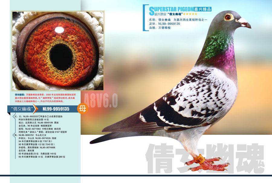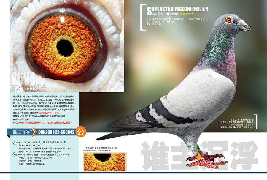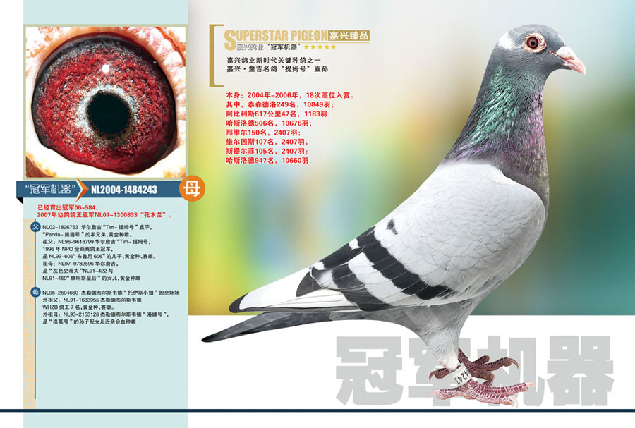 ![]() 四川嘉兴鸽业曹军先生,1968生于赛鸽世家,上世纪80年代,曹先生的父亲养鸽,他也经常在周围看,养鸽可以说是子承父业,但正式自己比赛开始于1996年,当时玩国血,为了把国血各系研究清楚,常常来往上海、江苏等地,跑遍了国内名家,如汪顺新、刘秀龙、杨登元、徐永昌等都一一拜访,开始走了不少弯路,逐渐摸索,对鸽子的认识也逐步提高。这期间已经有外血进入国内,曹总发誓飞不下来2000公里绝不碰外血鸽,直至2004年参加2000公里胜利凯旋,嘉兴鸽业从700公里一路杀到2000公里,囊括各级别冠军。现在,聊起国血鸽,曹军先生依然信手拈来,如数家珍。 嘉兴鸽业2005年开始转入使用外血鸽参赛,先后引进万德维根和盖比,盖比这路做出了很多公棚前十名,和很多地方赛前10名。尤其“谁主沉浮”这路盖比眼睛以全黄底、浮砂为红色为主要特征,颜色分明、单一、纯正,盖比的一个缺陷是后身稍差一点,但是一旦与其他品种鸽子杂交后马上改变。曹总说骨架容易改造,眼睛级别很难改,低级别的眼睛,很难做出高级别的眼砂,特别是眼级,是一个血统的代表,距程的代表,300公里眼级的鸽子做500公里、1000公里,是做不出来的,所以说,“谁主沉浮”这路在这几年参加公棚比赛给嘉兴鸽业立下赫赫战功。 嘉兴鸽业的源头种鸽达克斯国家冠军“倩女幽魂”,是97老雄(万德维根血系)配对97老雄弟弟的孙女,算是赛绩配远亲回血。 目前曹军先生主要以万德维根和盖比、桑杰士(罗森波斯桑杰士、罗尼凡瑞特桑杰士、乔斯桑杰士、吉林克斯桑杰士)作为基础种鸽。后来,曹先生多次前往欧洲,拜访欧洲强豪,引进种鸽。主要以各类型詹森鸽,与万德维根、盖比、桑杰士进行杂交,比如荷兰克拉克、彼得米卫、德国米西詹森等。根据不同的距离,不同的地理环境,气候特征,调整不同的配对,也就是曹军先生所说的“定向作育的方法”。 从2006年开始,嘉兴鸽业进入大爆发时期。同时进军全国各地公棚比赛,战绩空前。粗略统计了一下,近年来,嘉兴鸽业荣获公棚冠军7次,公棚鸽王前十名18次,公棚前十名40次,公棚鸽王冠军4次,公棚团体冠军、亚军、季军多次,大奖不断,成就一段鸽界佳话。 本场拍卖主要血统介绍 【“魂牵梦绕×倩女幽魂”直系:H1、H2、H9】 “魂牵梦绕×倩女幽魂”: “魂牵梦绕”NL-1997-9747442荣获:1998年达克斯国际赛65名。“倩女幽魂”NL99-9959135荣获:2000年达克斯国际冠军。 “魂牵梦绕”与“倩女幽魂”组成梦幻配对,成为嘉兴鸽业三大基础种鸽之一,作出子代均直接留种,后代成绩仅仅公棚百名内已无法统计。 ![]() ![]() 【“谁主沉浮”直系:H2、H3、H4】 “谁主沉浮”CHN2001-22-668842:为嘉兴鸽业镇棚种公之一(别名“金环盖比”),“谁主沉浮”这路盖比从眼睛上以金黄底浮砂为红色为主要特征,颜色分明、很单一、很纯正,盖比的一个特点,缺陷是后身稍差一点,但是一旦与其他品种鸽子杂交后马上改变。骨架容易改造,眼睛级别很难改,低级别的眼睛,很难做出高级别的眼砂,特别是眼级,是一个血统的代表,距程的代表。谁主沉浮的眼级很高,这近参加公棚比赛给嘉兴鸽业立下赫赫战功。后代冠亚军前十百羽。 最佳直女“天之骄子”是本舍众多公棚、协会鸽王冠军的母亲 直接作出子代荣获:2006年绵阳金鹰公棚冠军、2006年山西红太阳公棚冠军 ![]() 【“万马奔腾”直系:H5、H6】 “万马奔腾”CHN2000-22-201882:为嘉兴鸽业关键种公之一,血统米西 詹森。父亲在德国赢得奔驰轿车一台。本身佩戴超龄环,实际出生于2006年。 后代作出成绩: 2009年山东红润公棚预赛18名 2009年河北天宇公棚决赛15名、鸽王4位 2010年天津静海觉信通决赛10名、鸽王10名 2010年北京丰台3000元/枚特比19名 ![]() 【“雷霆出击”直系:H7、H8】 “雷霆出击”B2006-6329155:为嘉兴鸽业镇棚金母,5次获奖,本身获亚精顿全国5374羽179名。 直子“雷霆闪电”2010年秋四川国奥国际公棚预赛44名,决赛11名、鸽王亚军。 ![]() 【“冠军机器”直系:H10】 “冠军机器”NL2004-1484243:为嘉兴鸽业新时代关键种鸽之一,本身2004年-2006年18次高位入赏。其中,泰森德洛249名,10849羽;阿比利斯617公里47名,1183羽;哈斯洛德506名,10676羽;那维尔150名,2407羽;维尔因斯107名,2407羽,斯提尔菲105名,2407羽;哈斯洛德947名,10660羽。 已经育出冠军06-584,2007年幼鸽鸽王亚军NL07-1300833“花木兰”。 ![]() 【“军校之花”直系:H11】 “军校之花”NL2011-2022914:慕利门“军校生914”,雌,钱笔灰白条,是比佛 丹姆黄金配对“白头91配美国小姐”的3重回血曾孙女,包含慕利门“军校生”、“班杰明”等王牌血统。 ![]() 本场拍卖鸽预览 H1 ![]() H2 ![]() H3 ![]() H4 ![]() H5 ![]() H6 ![]() H7 ![]() H8 ![]() H9 ![]() H10 ![]() H11 ![]() H12 ![]() 本期结拍时间:2015.12.03 20:00 起拍价:1000元 咨询电话:4000-032-019 QQ:34968375 拍卖大厅由此去>>> |