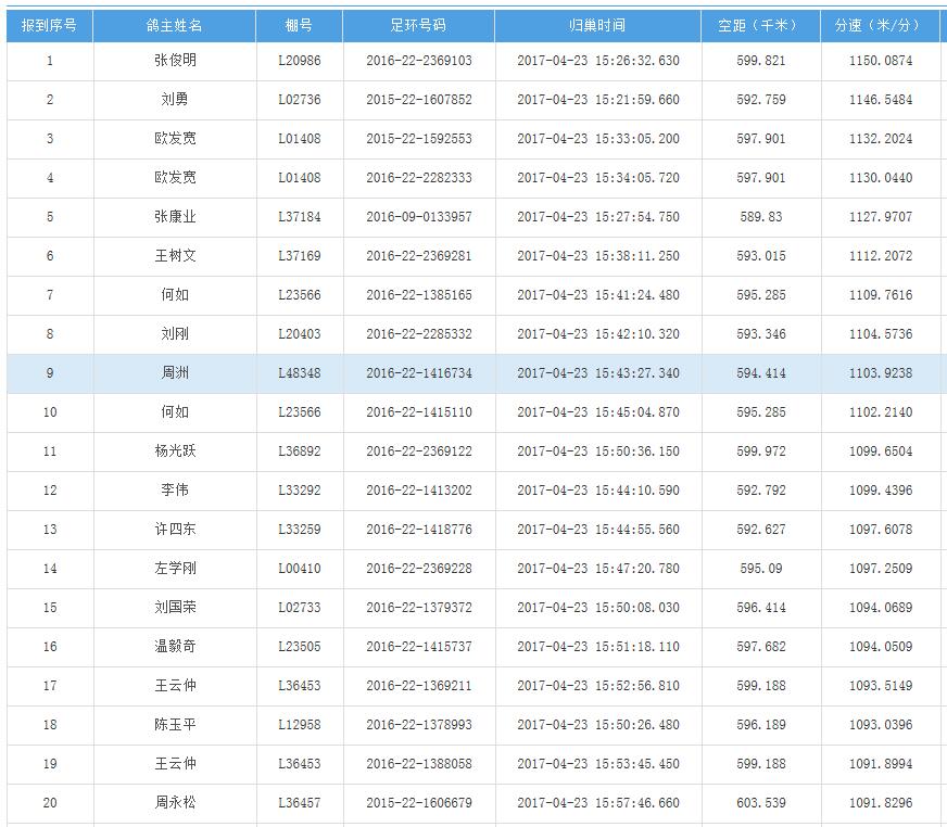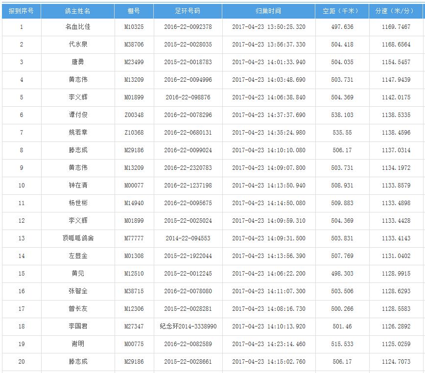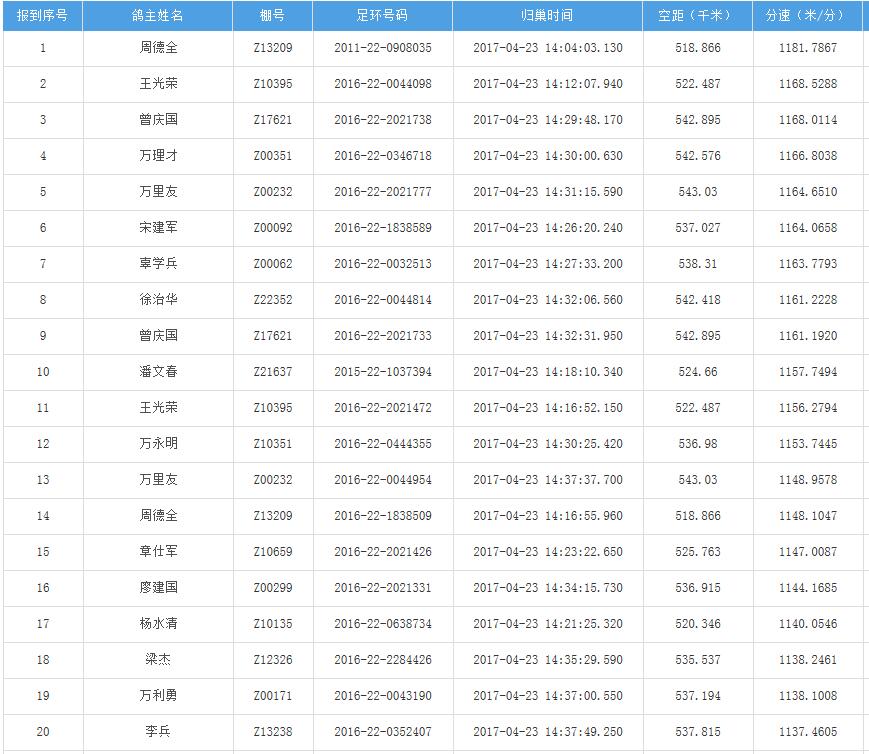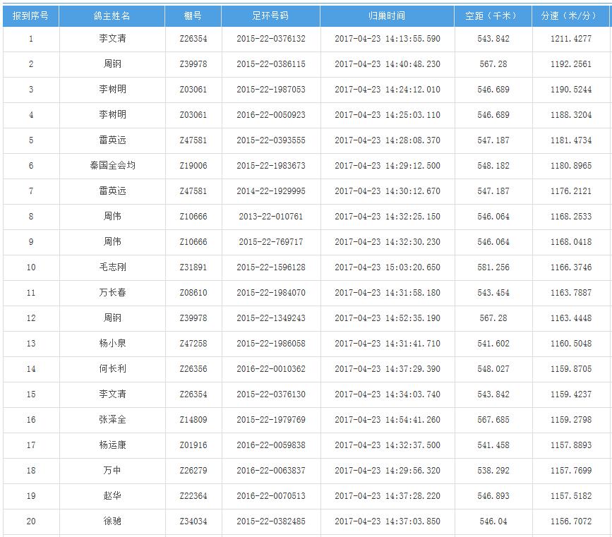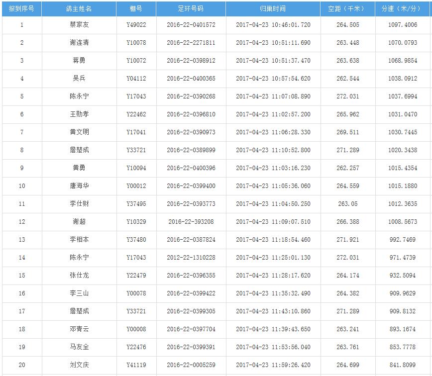 四川秦岭大赛内江隆昌集鸽点报道数据