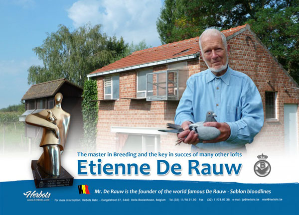 如今在养鸽人面前提起帝卢.速霸龙,几乎是无人不知、无人不晓,这对双人组合改变了欧洲的赛鸽历史,谱写了欧洲鸽坛的新乐章。在“比利时”这个百年赛鸽王国,百万鸽友近百年的努力都始终及不上这个双人组合10年的成就,在过去短短几年内几乎成为了欧洲长距离的第一霸主。他们共获得了超过15个以上的K.B.D.B鸽王奖杯,著名的黄金配对B1990-4002911“亚伯ALBERT”灰雄与B1990-4002926“宝拉PAOLA”被喻为欧洲长距离的第一黄金配对,这个黄金配对作出的直系超过10羽长距离鸽王。由比利时鸽报主办的清舍拍卖会中,全舍拍卖鸽均以天价成交,再次打破了欧洲的单场拍卖记录......这是多么令人不可思议与想象的荣耀与成就。 一般的“强豪”鸽友,终其一生的努力,也未必能亲捧几座金杯一次,而帝卢.速霸龙鸽族,在比利时长距离鸽坛却如此辉煌。帝卢.速霸龙到底是何许人也? ![]() 法兰斯.速霸龙与倚天.帝卢 帝卢.速霸龙的缘起 帝卢.速霸龙是两个人的组合,位于比利时东弗拉芒省,他们的鸽舍是由倚天.帝卢(ETIENNE DE RAUW)以及法兰斯.速霸龙(FRANS SABLON)两个人联合的一个搭档鸽舍,两个人的合作使用了两个人的姓氏来合称。这两位超级鸽友之所以能够合作,也因为他们两个分别娶了一对姊妹花,也就是说倚天.帝卢与法兰斯.速霸龙是两位连襟兄弟。多年下来的合作,欧洲鸽友也对他们的鸽族有了认同,而称为帝卢.速霸龙。 ![]() 倚天.帝卢 帝卢.速霸龙早期鸽子主要来自3个鸽舍,他们分别是De Ridder Josef(德瑞得.约瑟夫)与Rosseels Oostende(罗赛.奥斯坦丁)和Pros Honone Serskamp(普罗.贺勒史坎普)。这3个鸽舍,除了约瑟夫是位长距离名家之外,另外两人都是地方性的中距离好手。他们的鸽系,主要是由中距离(600-800公里)鸽系演变与杂交而成。多年以来,他们的鸽子更是成了一个由不同的鸽友使翔都能成功的神奇鸽族。 他们培育出的鸽子都取得了很好的成绩,其中,他们鸽舍内的一对黄金配对B1990-4002911“亚伯ALBERT”灰雄与B1990-4002926“宝拉 PAOLA”更可称为欧洲长距离的第一黄金配对,这个黄金配对下代作出了8羽KBDB长距离鸽王全国冠军,更可说是史无先例。另外,还有一羽来自他们鸽舍比较著名的鸽子“幸运85”当时是以100万天价拍卖到了中国,这在当时是一个惊天的高价。后来又有很多KBDB长距离鸽王来自他的鸽系。 经典成绩: 帝卢.速霸龙鸽系的辉煌从获得1999年KBDB长距离全国冠军开始,此鸽卖到西安阳光取名“阳光斗士”,随后直接作出上海百万欧元公棚大赛亚军。接下来帝卢.速霸龙梦幻配对“亚伯、宝拉”直子又获得了2001年KBDB长距离鸽王冠军取名“世纪战神”由台湾国际鸽舍引进,在两岸之间大小公棚赛事发挥令人震惊!2005年KBDB长距离鸽王全国冠军“国际4号”由艾力克?林伯格作翔,这羽鸽王环号B2003-4290077直接由帝卢?速霸龙作出,是林伯格购一整轮帝卢幼鸽使翔。2006年KBDB长距离鸽王全国冠军再度由艾力克?林伯格作翔“幸运85”并再次以开价130万元人民币卖到河北唐山南北鸽舍。2007年KBDB长距离鸽王全国亚军再次由艾力克?林伯格作翔同样受到鸽友的肯定与认同。 “亚伯B1990-4002911”与“宝拉B1990-4002926”这个“梦幻配对”的直接下代,共计做出了8羽K.B.D.B长距离鸽王,简直是令人匪夷所思。 B1997-4173729“灰鸽王 BLAUWES AS”为梦幻配对三重近亲,入赏1999 K.B.D.B长距离鸽王全国7名。 B1999-4391511“世纪战神 FONDMAN”为梦幻配对直子,入赏2001 K.B.D.B长距离鸽王全国亚军 B1999-4500907“超级无敌 PATRON”为梦幻配对纯血多重近亲 ,入赏2003年K.B.D.B长距离鸽王全国冠军 B2000-4066087“白羽鸽王 WITPEN AS”为梦幻配对之孙,入赏2002年K.B.D.B长距离鸽王全国5名 B2000-4174021“铁人 STIELMAN”为梦幻配对纯血多重近亲,入赏2003年K.B.D.B长距离鸽王全国4名。 B2003-4290077“幸运77 Luck 77”为梦幻配对之孙,入赏2005年K.B.D.B长距离鸽王全国冠军。 B2004-2063085“幸运85 Luck 85”为梦幻配对曾孙,入赏2006年K.B.D.B长距离鸽王全国冠军 B2004-4375935“神灯巨人”为梦幻配对纯血多重近亲,入赏2006年K.B.D.B长距离鸽王全国7名。 拍卖受追捧,一度成名 到了2003年,两个人因为各种原因决定分道扬镳。当年12月26日,两个人在比利时举办了全舍拍卖会。长久以来,帝卢.速霸龙这个组合并不出名,因为他们是一个不愿张扬的迷你型鸽舍,但是却因为这场全舍拍卖会,他们的全部成绩与真实面貌才被公开出来,结果,很快的全欧洲乃至全世界一夜之间沸腾起来。 这次拍卖会受到了欧洲很多名家的追捧,包括:马歇尔.阿尔伯特、盖比、艾利克.林伯格、乔斯.托内、福雷迪.范西、贺伯特、裘斯.迪诺等人,无一缺席,所以这次拍卖会全数116羽以天价卖出,其中一羽无纪录的雄鸽,以30000欧元被拍走。从2003年以后,这对组合就分别分开来饲养鸽子。 继2003年帝卢与速霸龙这对连襟结束合作全舍拍卖,和2009年法兰斯.速霸龙清舍拍卖会,这二场拍卖会总额和单价,超过了以往欧任何一场拍卖会,法兰斯.速霸龙拍卖均价达到了4700欧元(折47000人民币)最高单价53万元,并吸引了众多欧洲强豪抢拍。这无一不说明这个当红鸽系在人们心中的位置。 倚天.速霸龙的最佳代言人——马歇尔.阿布瑞奇 现年80岁,居住在东法兰德斯省的马歇尔.阿布瑞奇,近几年在比利时乃至全世界都是家喻户晓的当红人物。马歇尔.阿布瑞奇鸽舍主力本身是帝卢.速霸龙血系,是帝卢?速霸龙鸽族