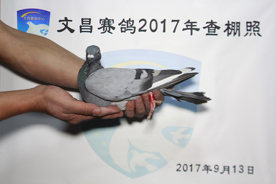 赛鸽足环号: 23-1086403车 次序:117 赛鸽特征:灰白条 清棚时刻:2017-9-13 21:26:27