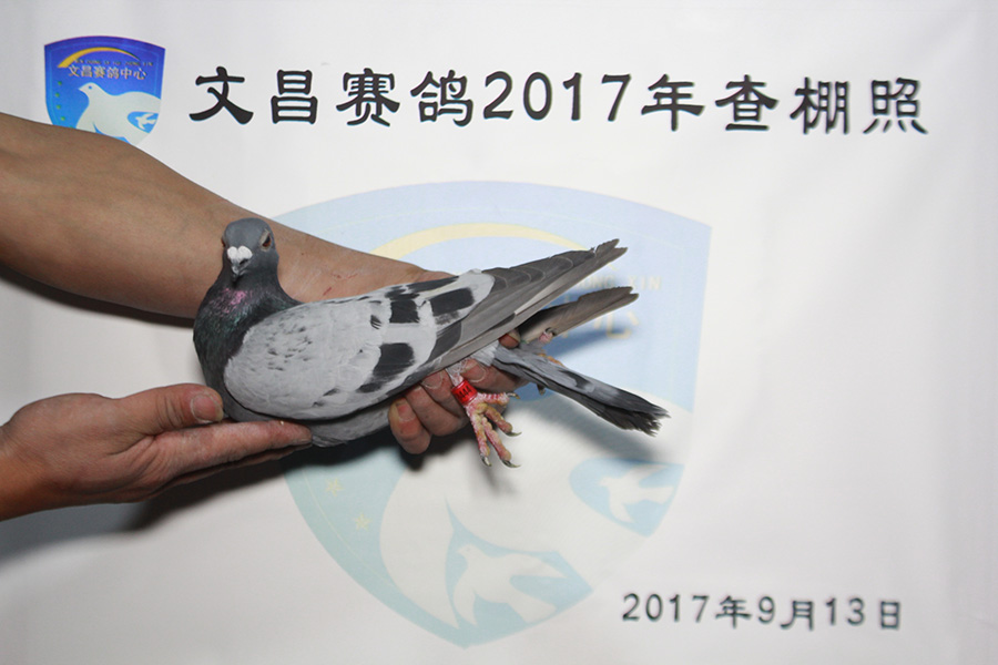 赛鸽足环号: 19-0378444 次序:318 赛鸽特征:雨点 清棚时刻:2017-9-13 22:32:16