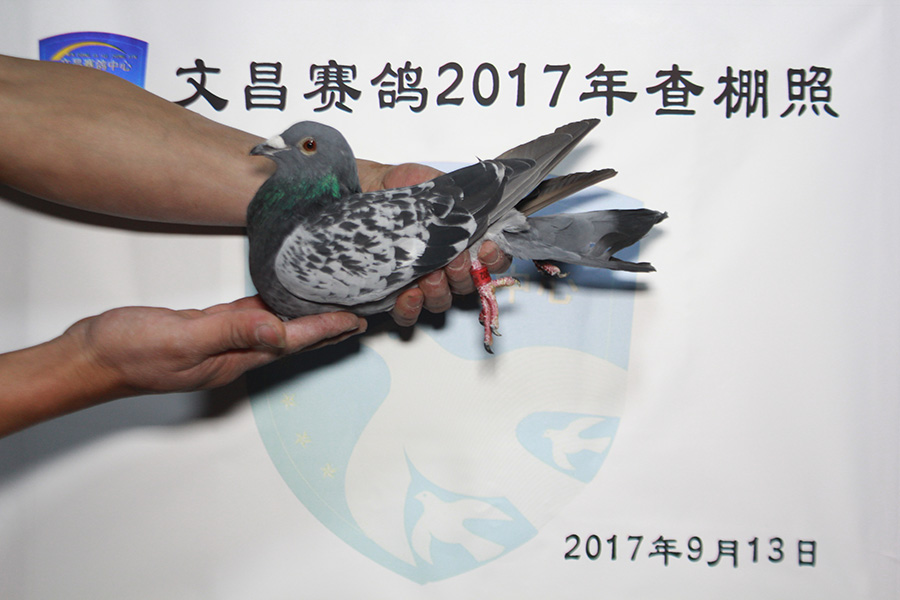 赛鸽足环号: 19-0416302车 次序:433 赛鸽特征:雨点 清棚时刻:2017-9-13 23:02:36