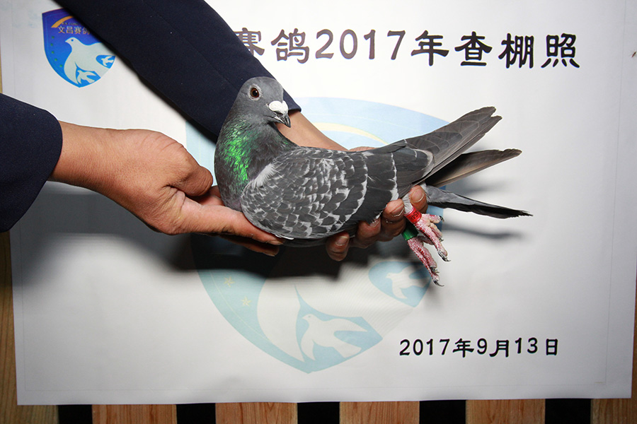 赛鸽足环号: 19-0284548车 次序:1721 赛鸽特征:雨点 清棚时刻:2017-9-13 21:57:49