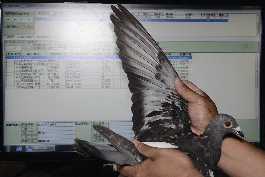 赛鸽足环号: 22-0772973 次序:1346 赛鸽特征:雨点 清棚时刻:2017-08-30 18:41:40
