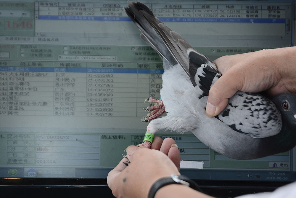 赛鸽足环号: 25-0002072 次序:3100 赛鸽特征:雨点 清棚时刻:2016-08-16 2:19:26