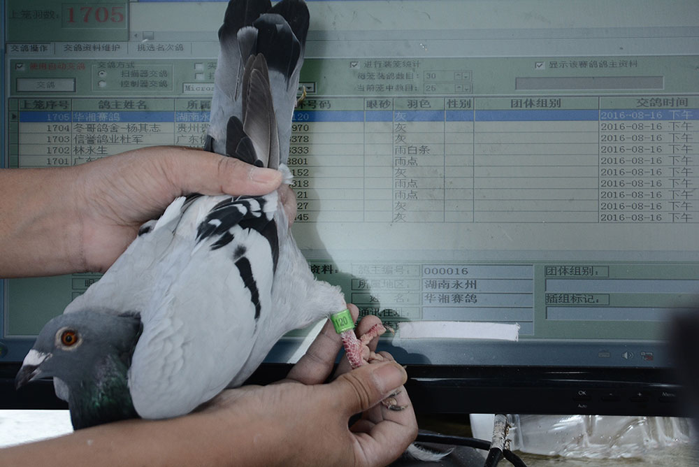 赛鸽足环号: 18-0111120 次序:3259 赛鸽特征:灰 清棚时刻:2016-08-16 3:15:07