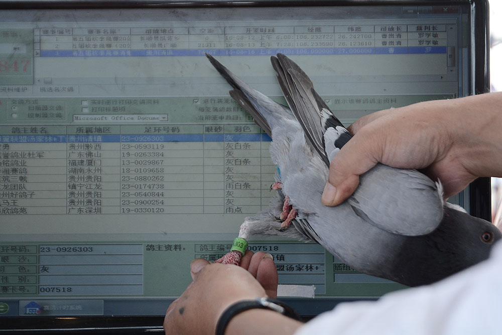 赛鸽足环号: 23-0926303 次序:3402 赛鸽特征:灰 清棚时刻:2016-08-16 3:43:17