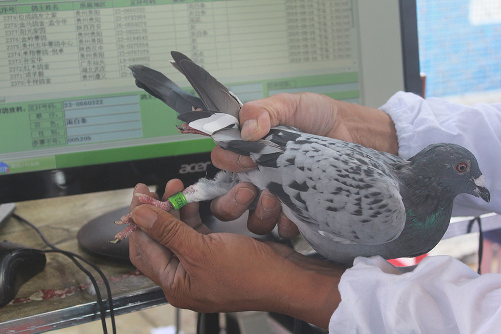 赛鸽足环号: 23-0660322 次序:6097 赛鸽特征:雨白条 清棚时刻:2016-08-16 3:50:53