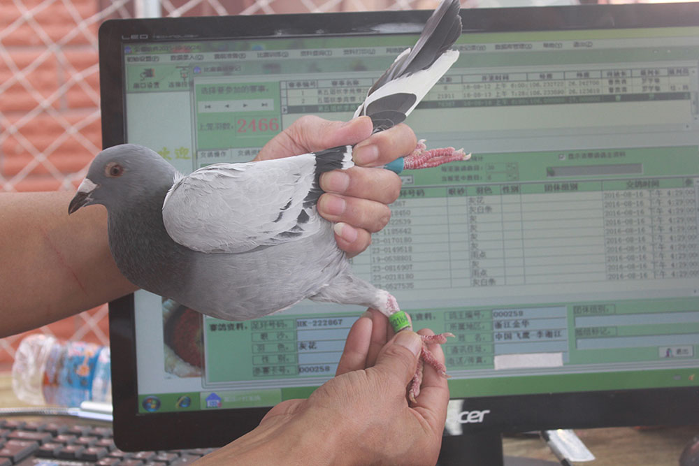 赛鸽足环号: 23-0218450 次序:6183 赛鸽特征:灰白条 清棚时刻:2016-08-16 4:29:43