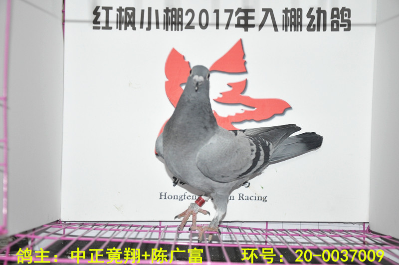 赛鸽足环号: 20-0037009 次序:2968 赛鸽特征:灰 清棚时刻: 2017-08-16 下午 1:09:39
