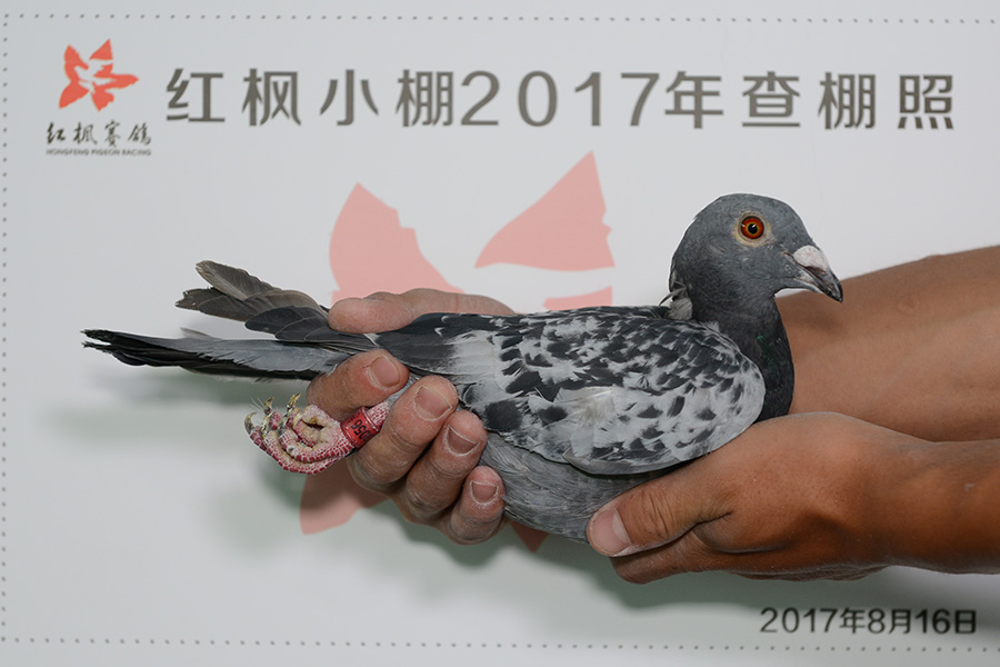 赛鸽足环号: 19-0023056 次序:3595 赛鸽特征:雨点 清棚时刻: 2017-08-16 下午 3:46:10