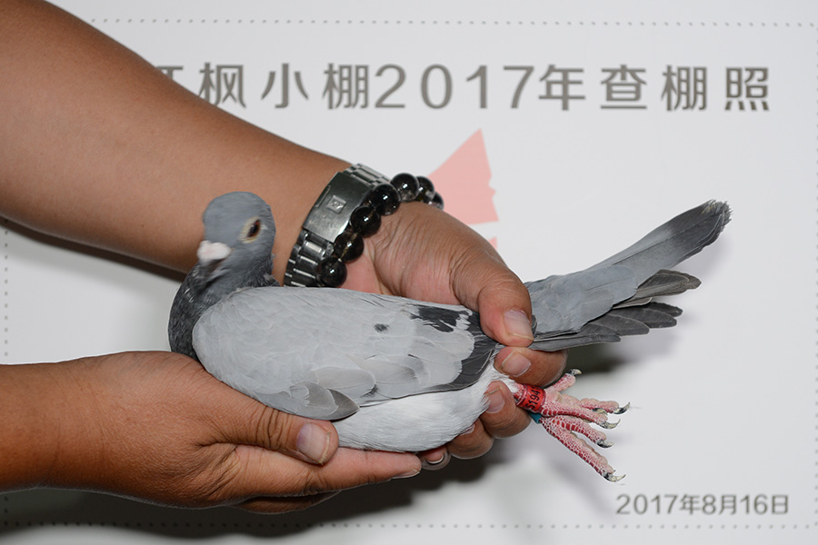 赛鸽足环号: 23-0519414 次序:4174 赛鸽特征:灰 清棚时刻: 2017-08-16 下午 7:37:02