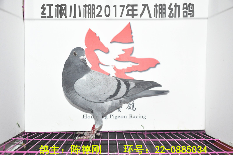 赛鸽足环号: 22-0885034 次序:6251 赛鸽特征:灰 清棚时刻: 2017-08-16 下午 5:33:55