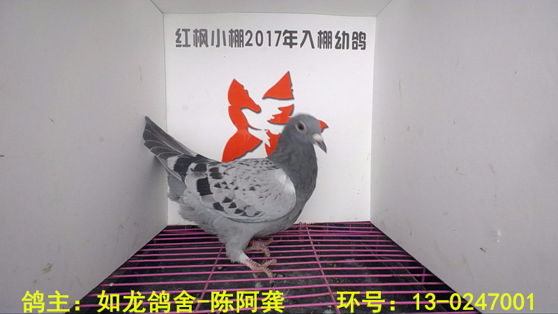赛鸽足环号: 13-0247001 次序:1310 赛鸽特征:雨点 清棚时刻: 2017-08-16 下午 4:12:12