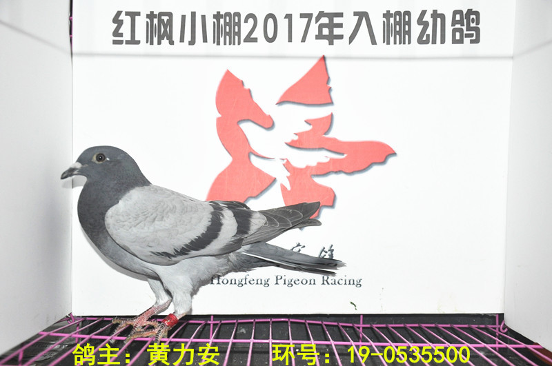 赛鸽足环号: 19-0535500 次序:1717 赛鸽特征:灰 清棚时刻: 2017-08-16 下午 5:53:29