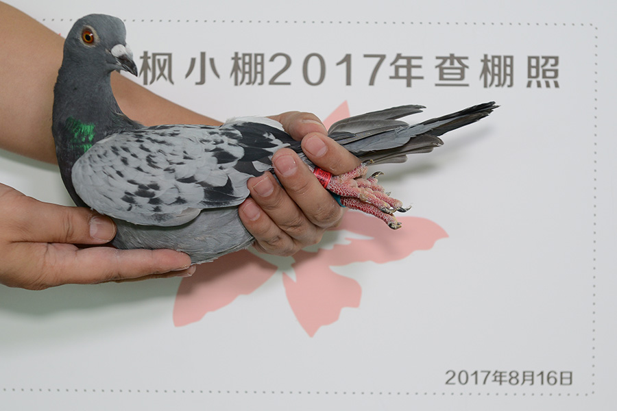 赛鸽足环号: 03-1422019 次序:2300 赛鸽特征:雨点 清棚时刻: 2017-08-16 上午 10:07:21
