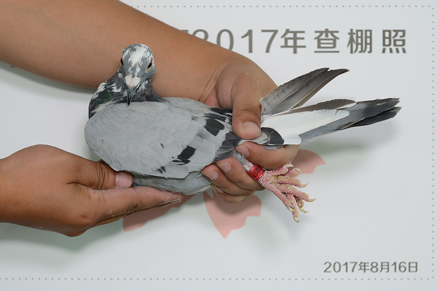 赛鸽足环号: 23-0080207 次序:2555 赛鸽特征:灰花 清棚时刻: 2017-08-16 上午 10:46:15