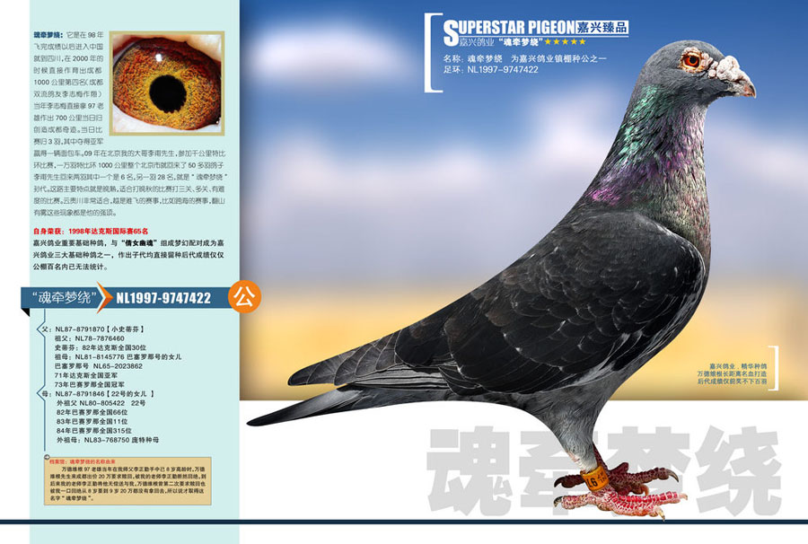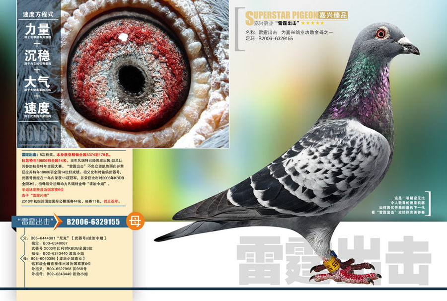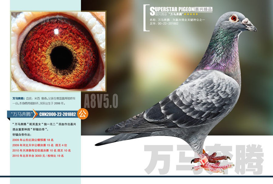![]() 四川嘉兴鸽业曹军先生,1968生于赛鸽世家,上世纪80年代,曹先生的父亲养鸽,他也经常在周围看,养鸽可以说是子承父业,但正式自己比赛开始于1996年,当时玩国血,为了把国血各系研究清楚,常常来往上海、江苏等地,跑遍了国内名家,如汪顺新、刘秀龙、杨登元、徐永昌等都一一拜访,开始走了不少弯路,逐渐摸索,对鸽子的认识也逐步提高。这期间已经有外血进入国内,曹总发誓飞不下来2000公里绝不碰外血鸽,直至2004年参加2000公里胜利凯旋,嘉兴鸽业从700公里一路杀到2000公里,囊括各级别冠军。现在,聊起国血鸽,曹军先生依然信手拈来,如数家珍。 嘉兴鸽业2005年开始转入使用外血鸽参赛,先后引进万德维根和盖比,盖比这路做出了很多公棚前十名,和很多地方赛前10名。尤其“谁主沉浮”这路盖比眼睛以全黄底、浮砂为红色为主要特征,颜色分明、单一、纯正,盖比的一个缺陷是后身稍差一点,但是一旦与其他品种鸽子杂交后马上改变。曹总说骨架容易改造,眼睛级别很难改,低级别的眼睛,很难做出高级别的眼砂,特别是眼级,是一个血统的代表,距程的代表,300公里眼级的鸽子做500公里、1000公里,是做不出来的,所以说,“谁主沉浮”这路在这几年参加公棚比赛给嘉兴鸽业立下赫赫战功。 嘉兴鸽业的源头种鸽达克斯国家冠军“倩女幽魂”,是97老雄(万德维根血系)配对97老雄弟弟的孙女,算是赛绩配远亲回血。 目前曹军先生主要以万德维根和盖比、桑杰士(罗森波斯桑杰士、罗尼凡瑞特桑杰士、乔斯桑杰士、吉林克斯桑杰士)作为基础种鸽。后来,曹先生多次前往欧洲,拜访欧洲强豪,引进种鸽。主要以各类型詹森鸽,与万德维根、盖比、桑杰士进行杂交,比如荷兰克拉克、彼得米卫、德国米西詹森等。根据不同的距离,不同的地理环境,气候特征,调整不同的配对,也就是曹军先生所说的“定向作育的方法”。 从2006年开始,嘉兴鸽业进入大爆发时期。同时进军全国各地公棚比赛,战绩空前。粗略统计了一下,近年来,嘉兴鸽业荣获公棚冠军7次,公棚鸽王前十名18次,公棚前十名40次,公棚鸽王冠军4次,公棚团体冠军、亚军、季军多次,大奖不断,成就一段鸽界佳话。 本场拍卖主要血统介绍 【“魂牵梦绕×倩女幽魂”直系:H1、H2、H9】 “魂牵梦绕×倩女幽魂”: “魂牵梦绕”NL-1997-9747442荣获:1998年达克斯国际赛65名。“倩女幽魂”NL99-9959135荣获:2000年达克斯国际冠军。 “魂牵梦绕”与“倩女幽魂”组成梦幻配对,成为嘉兴鸽业三大基础种鸽之一,作出子代均直接留种,后代成绩仅仅公棚百名内已无法统计。 ![]() ![]() 【“谁主沉浮”直系:H2、H3、H4】 “谁主沉浮”CHN2001-22-668842:为嘉兴鸽业镇棚种公之一(别名“金环盖比”),“谁主沉浮”这路盖比从眼睛上以金黄底浮砂为红色为主要特征,颜色分明、很单一、很纯正,盖比的一个特点,缺陷是后身稍差一点,但是一旦与其他品种鸽子杂交后马上改变。骨架容易改造,眼睛级别很难改,低级别的眼睛,很难做出高级别的眼砂,特别是眼级,是一个血统的代表,距程的代表。谁主沉浮的眼级很高,这近参加公棚比赛给嘉兴鸽业立下赫赫战功。后代冠亚军前十百羽。 最佳直女“天之骄子”是本舍众多公棚、协会鸽王冠军的母亲 直接作出子代荣获:2006年绵阳金鹰公棚冠军、2006年山西红太阳公棚冠军 ![]() 【“万马奔腾”直系:H5、H6】 “万马奔腾”CHN2000-22-201882:为嘉兴鸽业关键种公之一,血统米西 詹森。父亲在德国赢得奔驰轿车一台。本身佩戴超龄环,实际出生于2006年。 后代作出成绩: 2009年山东红润公棚预赛18名 2009年河北天宇公棚决赛15名、鸽王4位 2010年天津静海觉信通决赛10名、鸽王10名 2010年北京丰台3000元/枚特比19名 ![]() 【“雷霆出击”直系:H7、H8】 “雷霆出击”B2006-6329155:为嘉兴鸽业镇棚金母,5次获奖,本身获亚精顿全国5374羽179名。 直子“雷霆闪电”2010年秋四川国奥国际公棚预赛44名,决赛11名、鸽王亚军。 ![]() 【“冠军机器”直系:H10】 “冠军机器”NL2004-1484243:为嘉兴鸽业新时代关键种鸽之一,本身2004年-2006年18次高位入赏。其中,泰森德洛249名,10849羽;阿比利斯617公里47名,1183羽;哈斯洛德506名,10676羽;那维尔150名,2407羽;维尔因斯107名,2407羽,斯提尔菲105名,2407羽;哈斯洛德947名,10660羽。 已经育出冠军06-584,2007年幼鸽鸽王亚军NL07-1300833“花木兰”。 ![]() 【“军校之花”直系:H11】 “军校之花”NL2011-2022914:慕利门“军校生914”,雌,钱笔灰白条,是比佛 丹姆黄金配对“白头91配美国小姐”的3重回血曾孙女,包含慕利门“军校生”、“班杰明”等王牌血统。 ![]() 本场拍卖鸽预览 H1 ![]() H2 ![]() H3 ![]() H4 ![]() H5 ![]() H6 ![]() H7 ![]() H8 ![]() H9 ![]() H10 ![]() H11 ![]() H12 ![]() 本期结拍时间:2015.12.03 20:00 起拍价:1000元 咨询电话:4000-032-019 QQ:34968375 拍卖大厅由此去>>> |