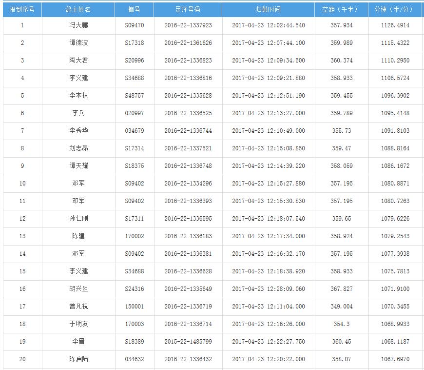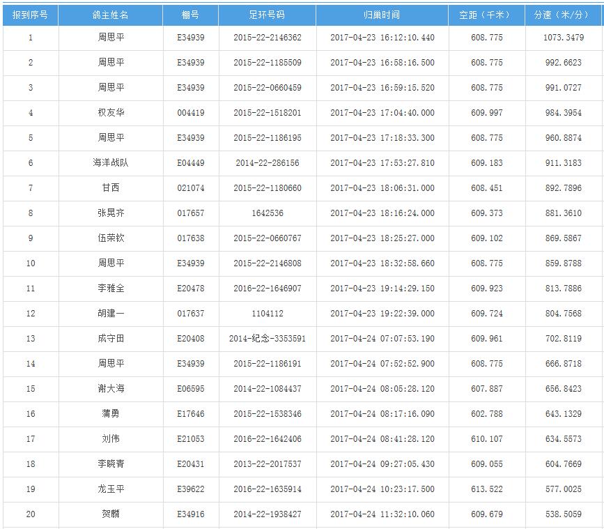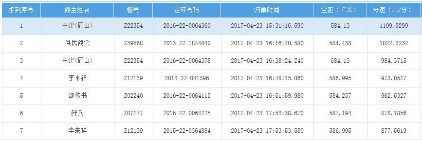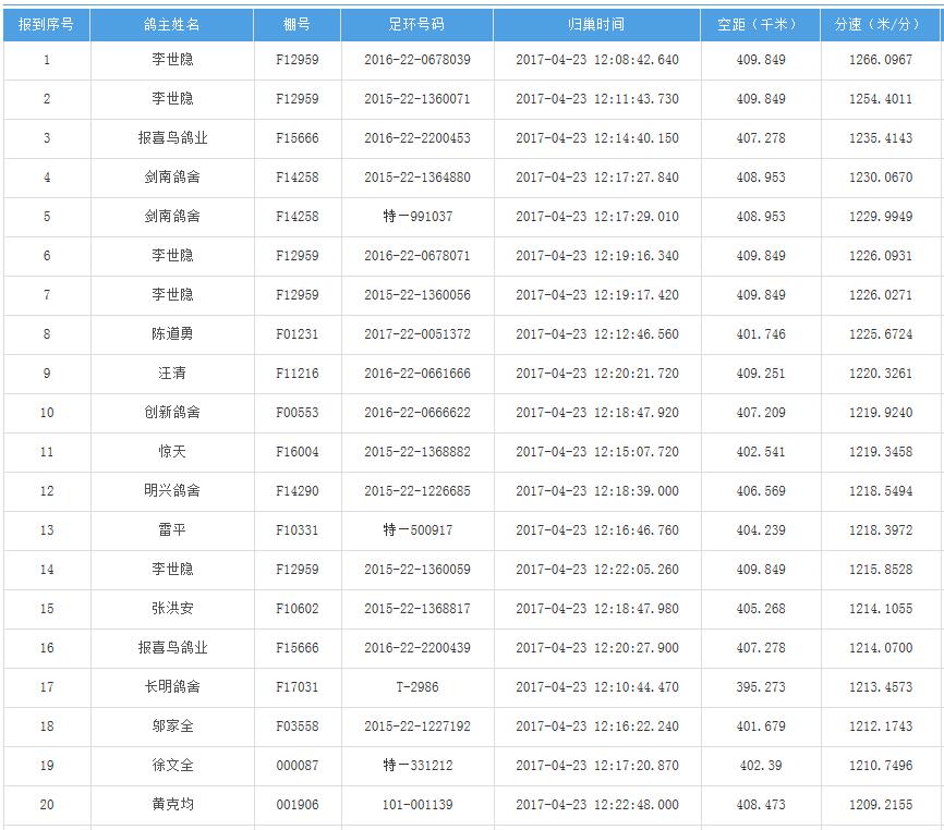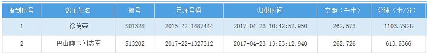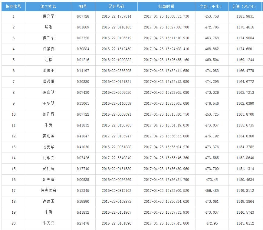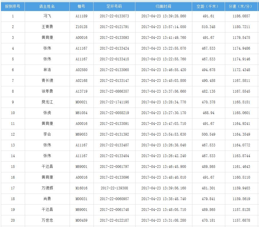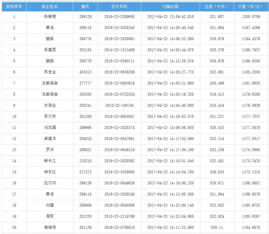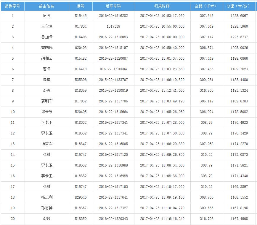 四川秦岭大赛内江隆昌集鸽点报道数据