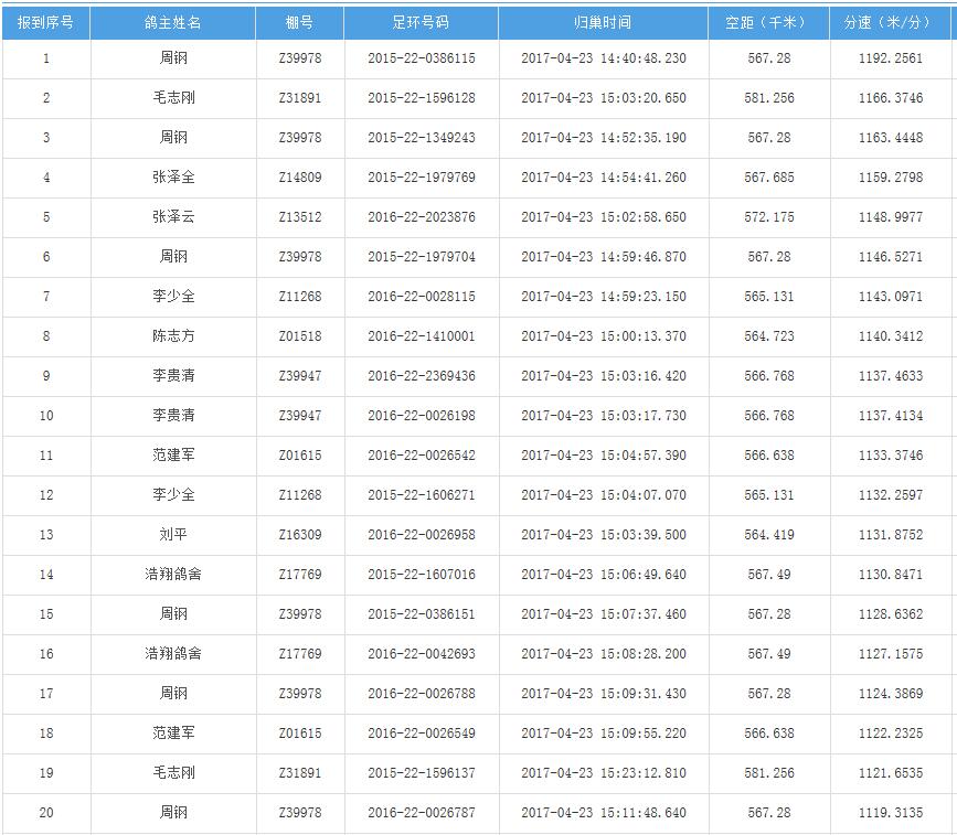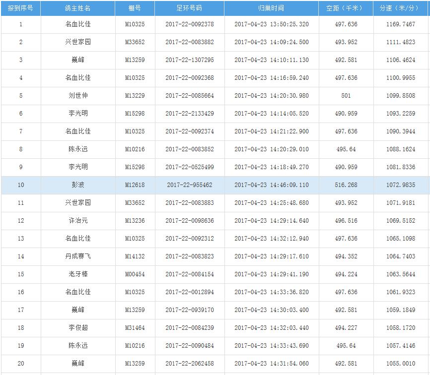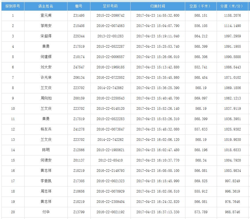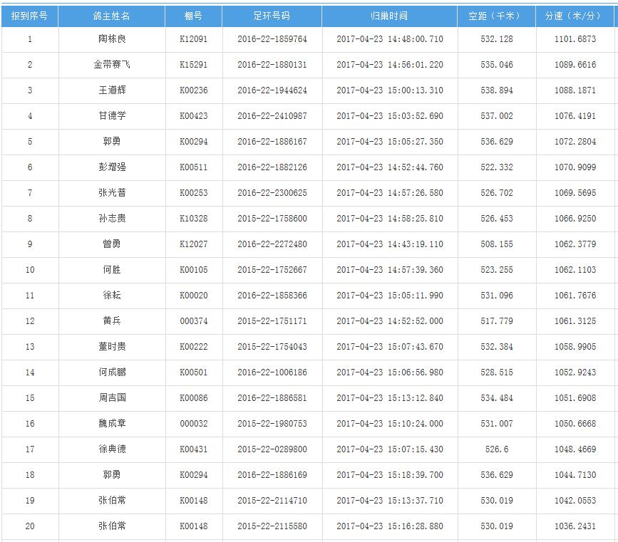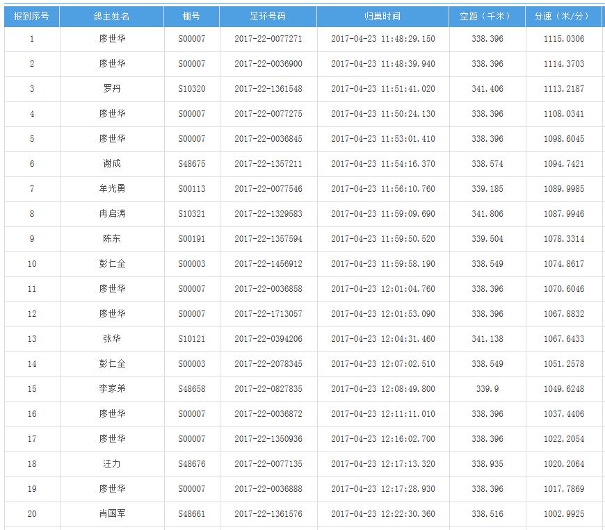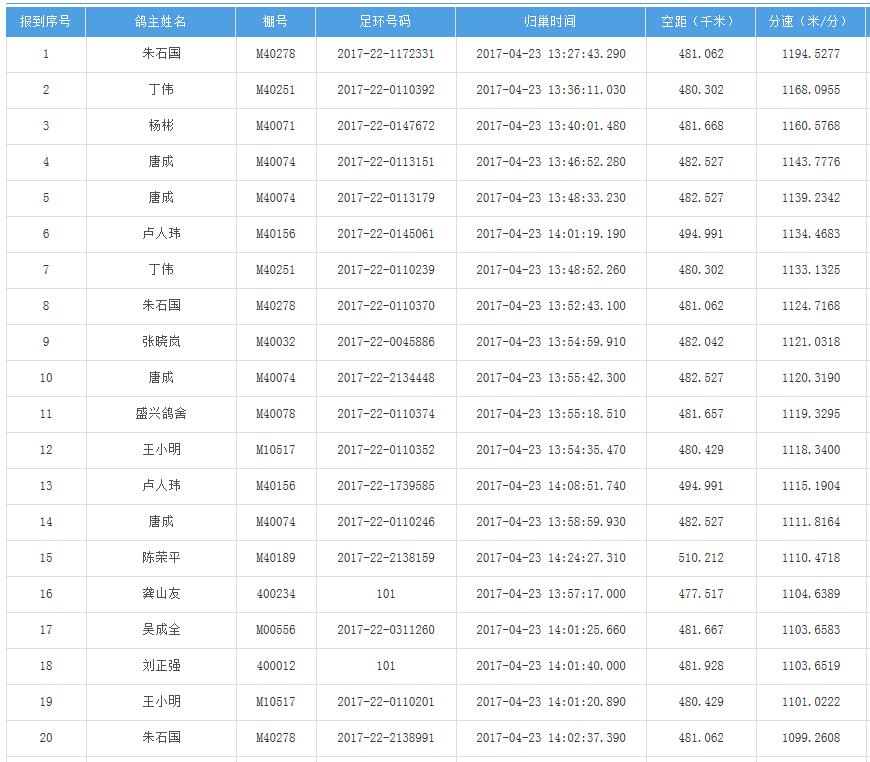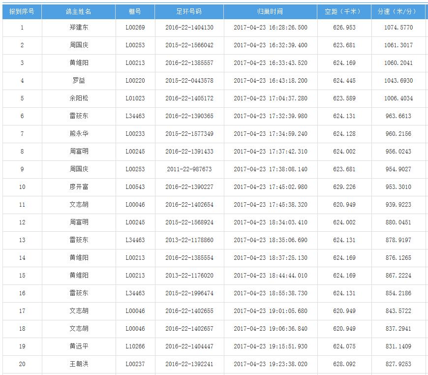 四川秦岭大赛内江隆昌集鸽点报道数据