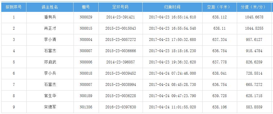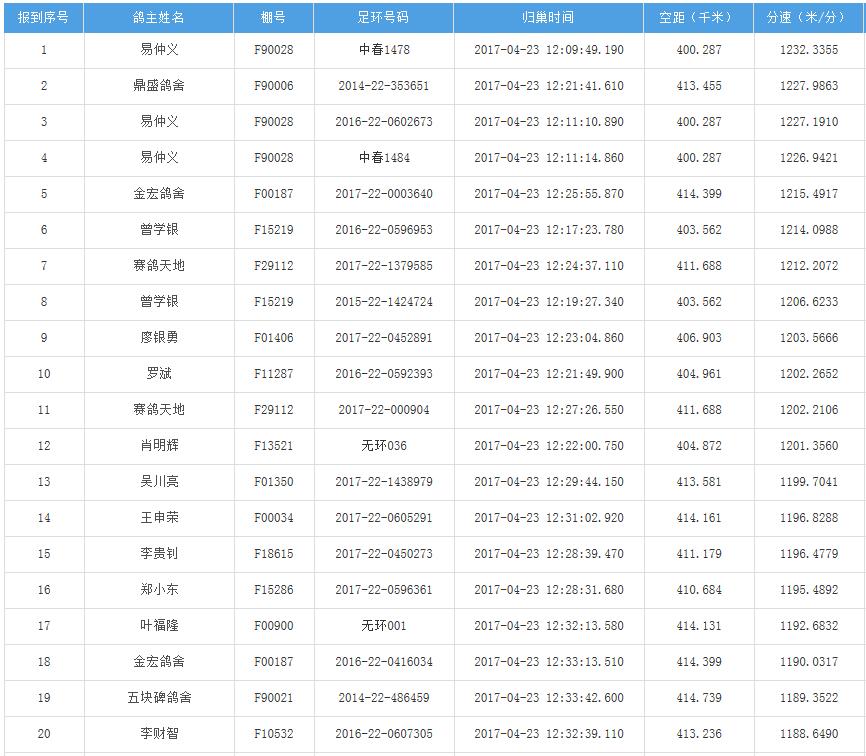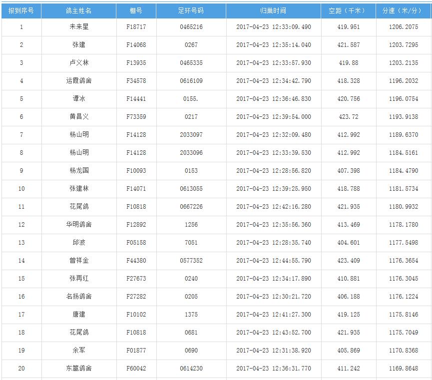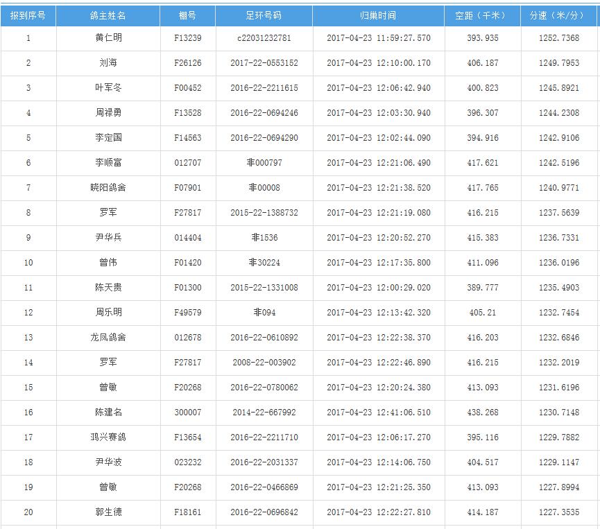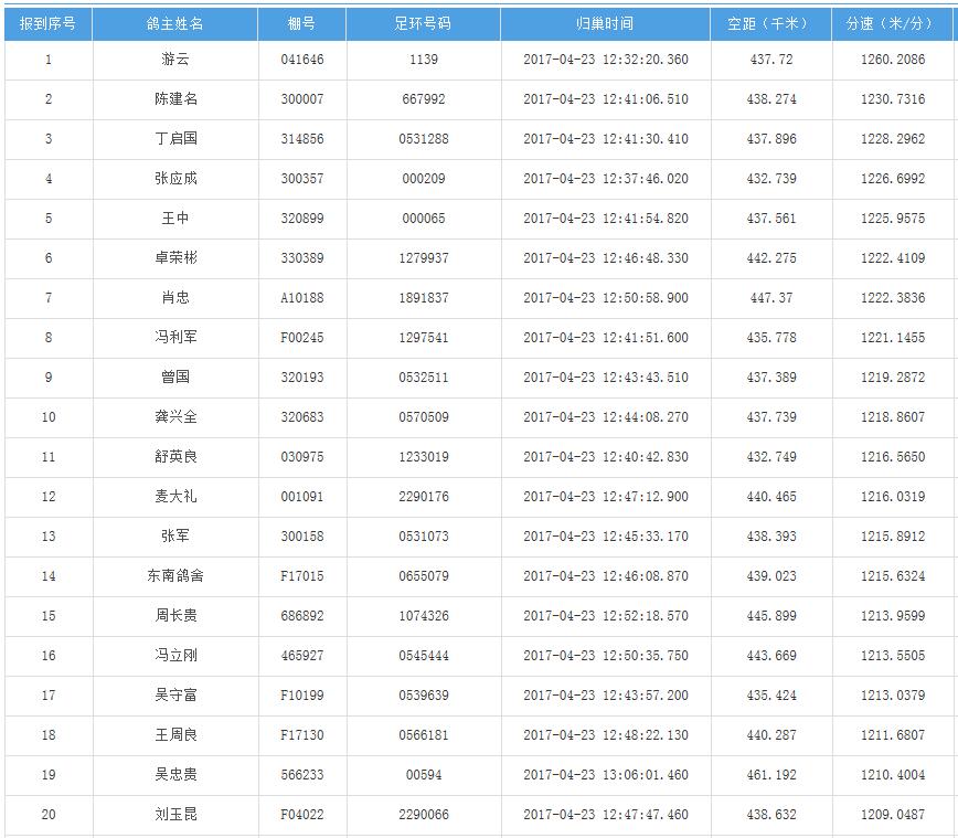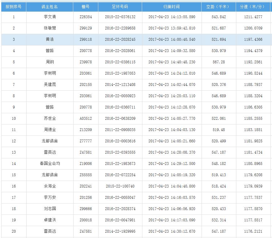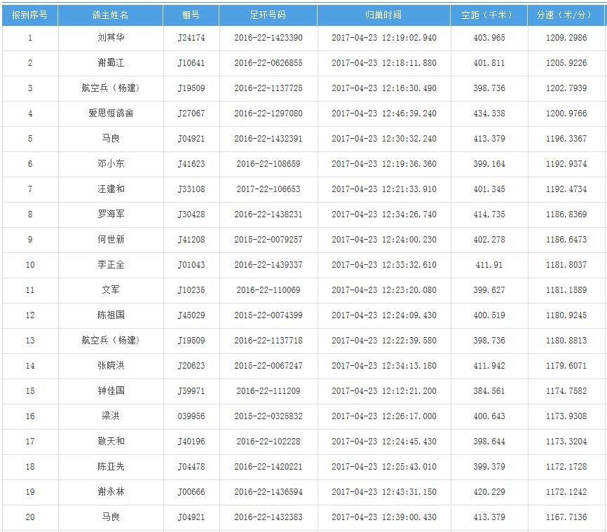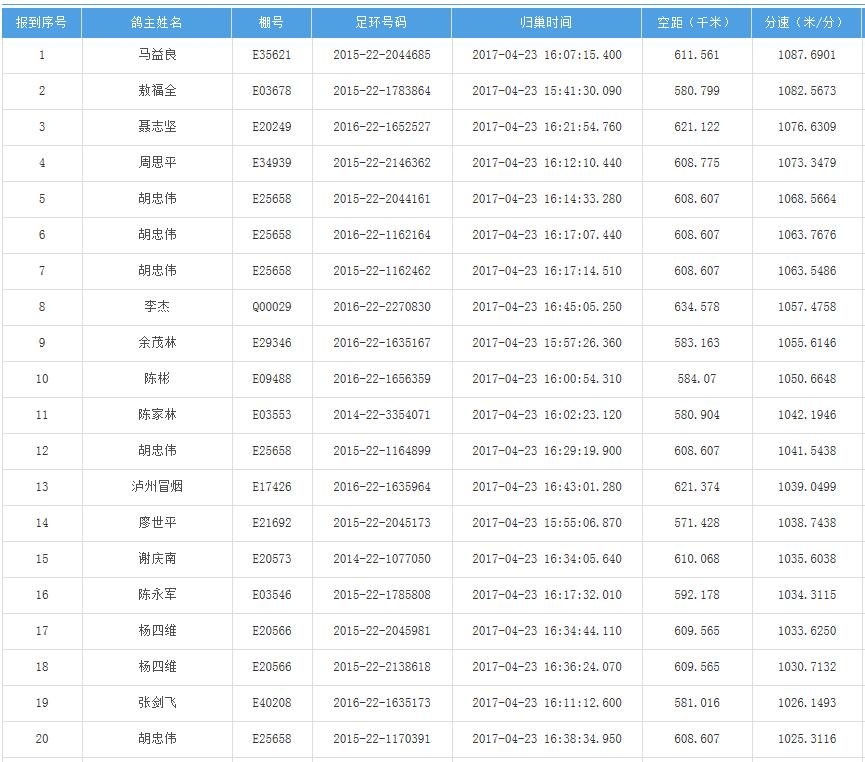 四川秦岭大赛内江隆昌集鸽点报道数据