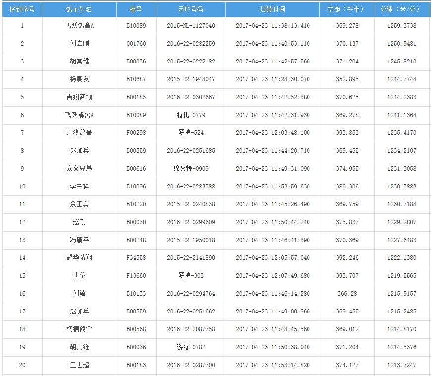 四川秦岭大赛内江集鸽点报道数据